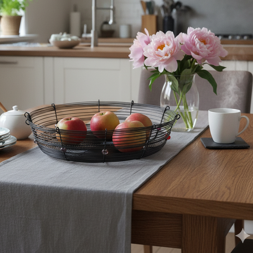 Do drátovaných mís, ošatek nebo košů uložte ovoce nebo ořechy, drátovaná stínidla zútulní jakoukoliv místnost.