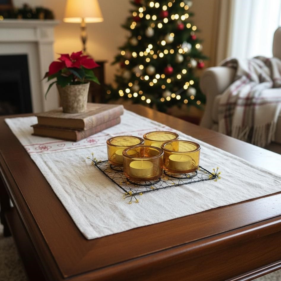 Pokud máte doma spoustu nevyužitých skleniček od svíček, můžete je využít s touto podložkou a pálením čajových svíček.