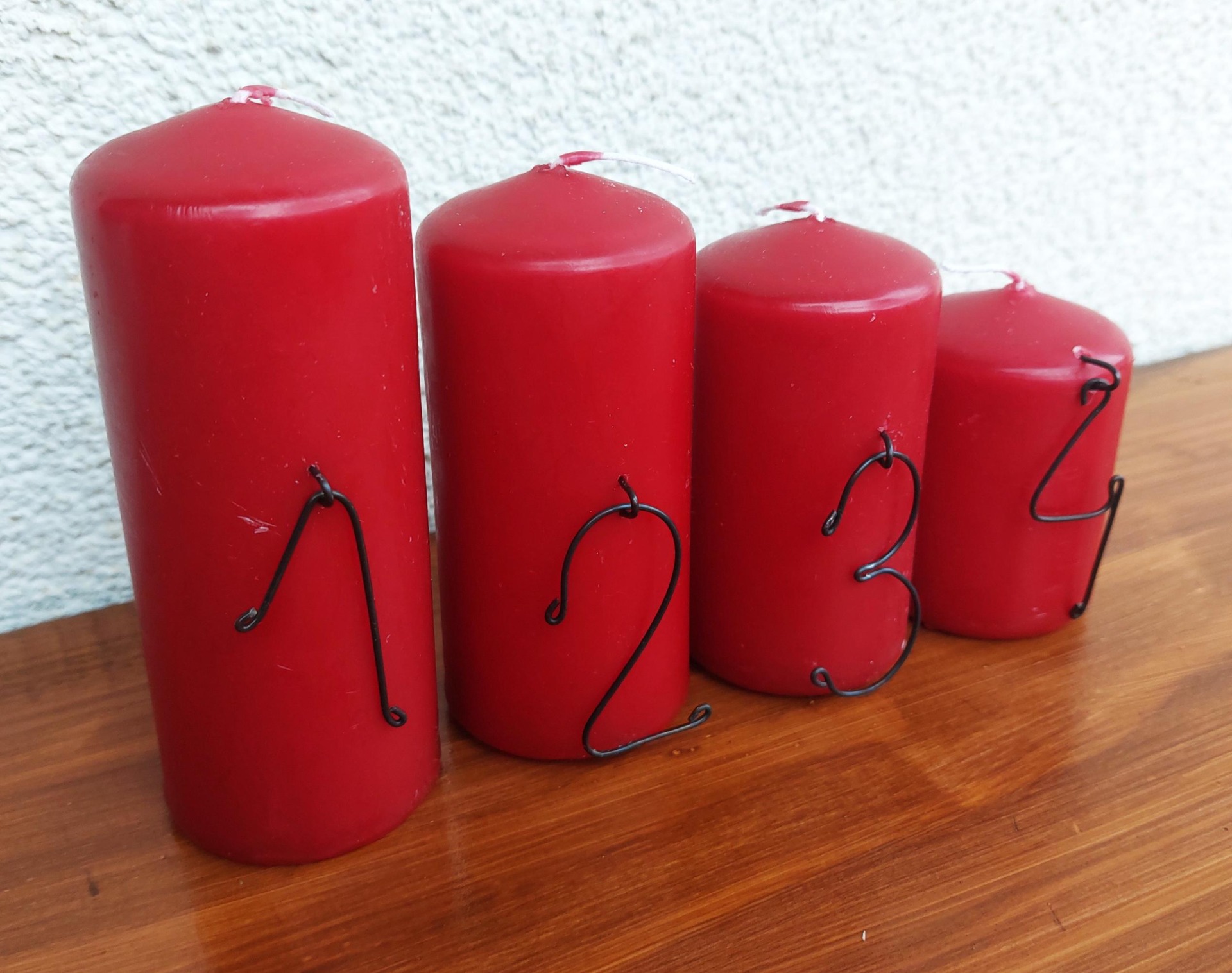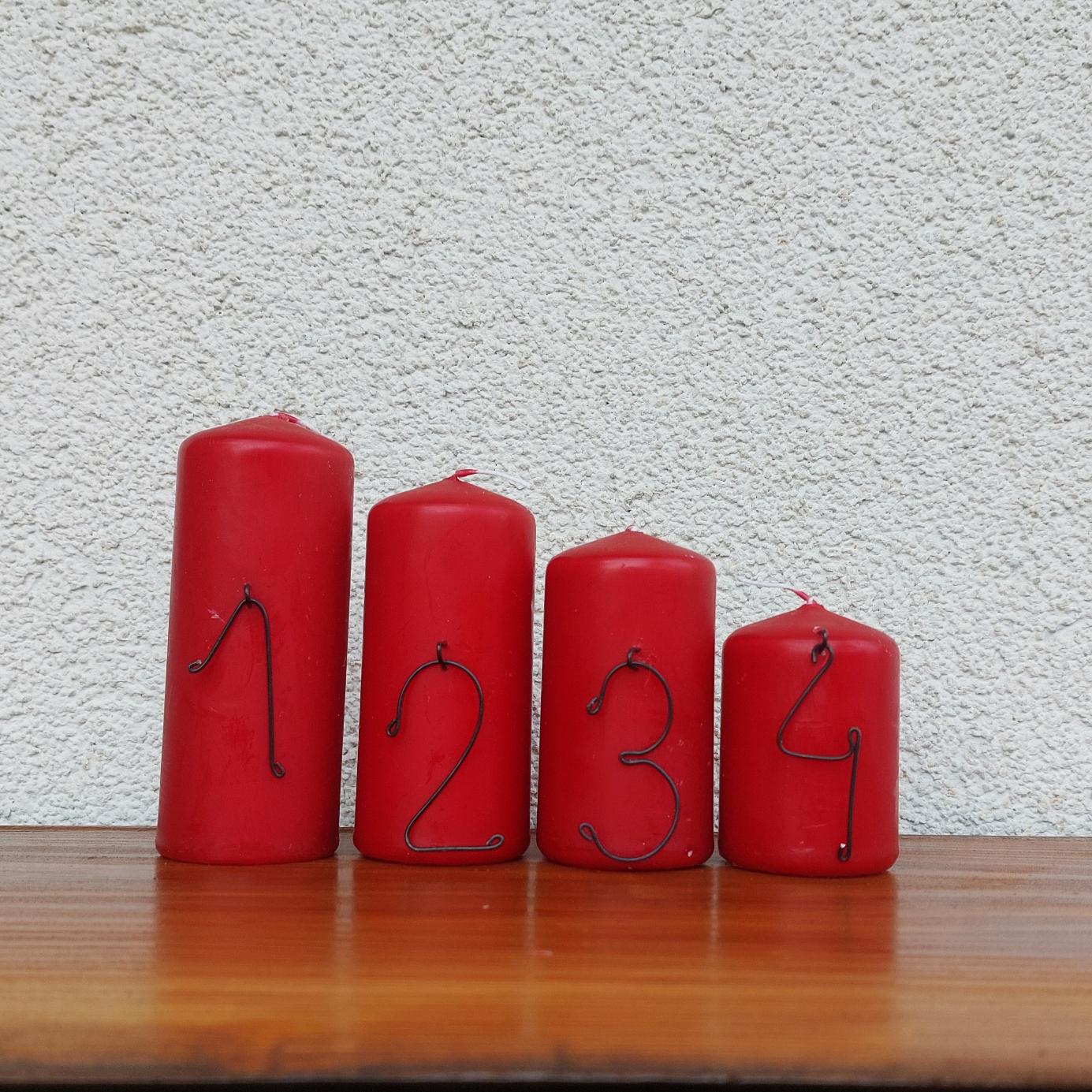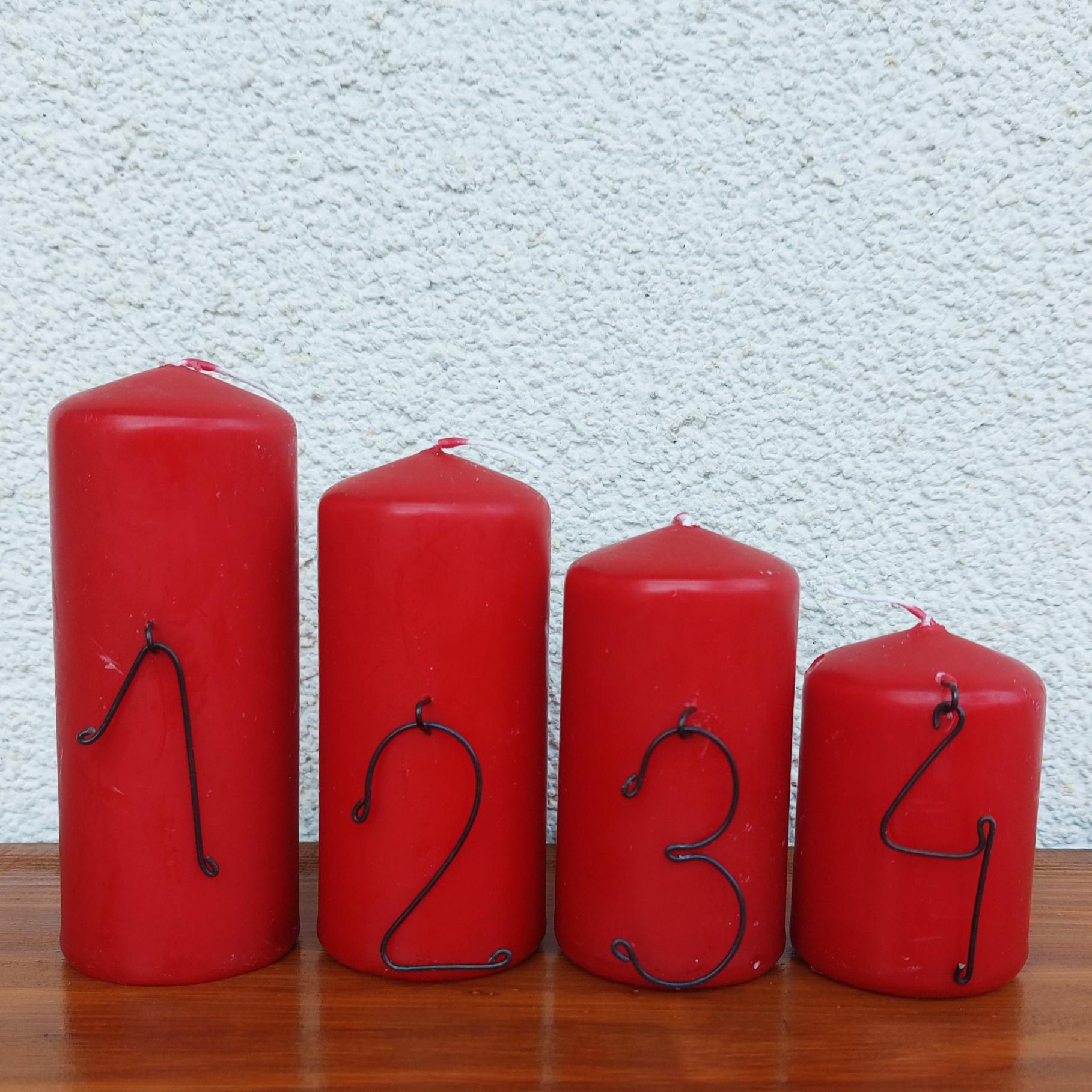 Čísla 1–4 mají výšku přibližně 5 cm, jsou vhodná pro svíčky různých průměrů – skobičku stačí jednoduše zapíchnout do vosku.