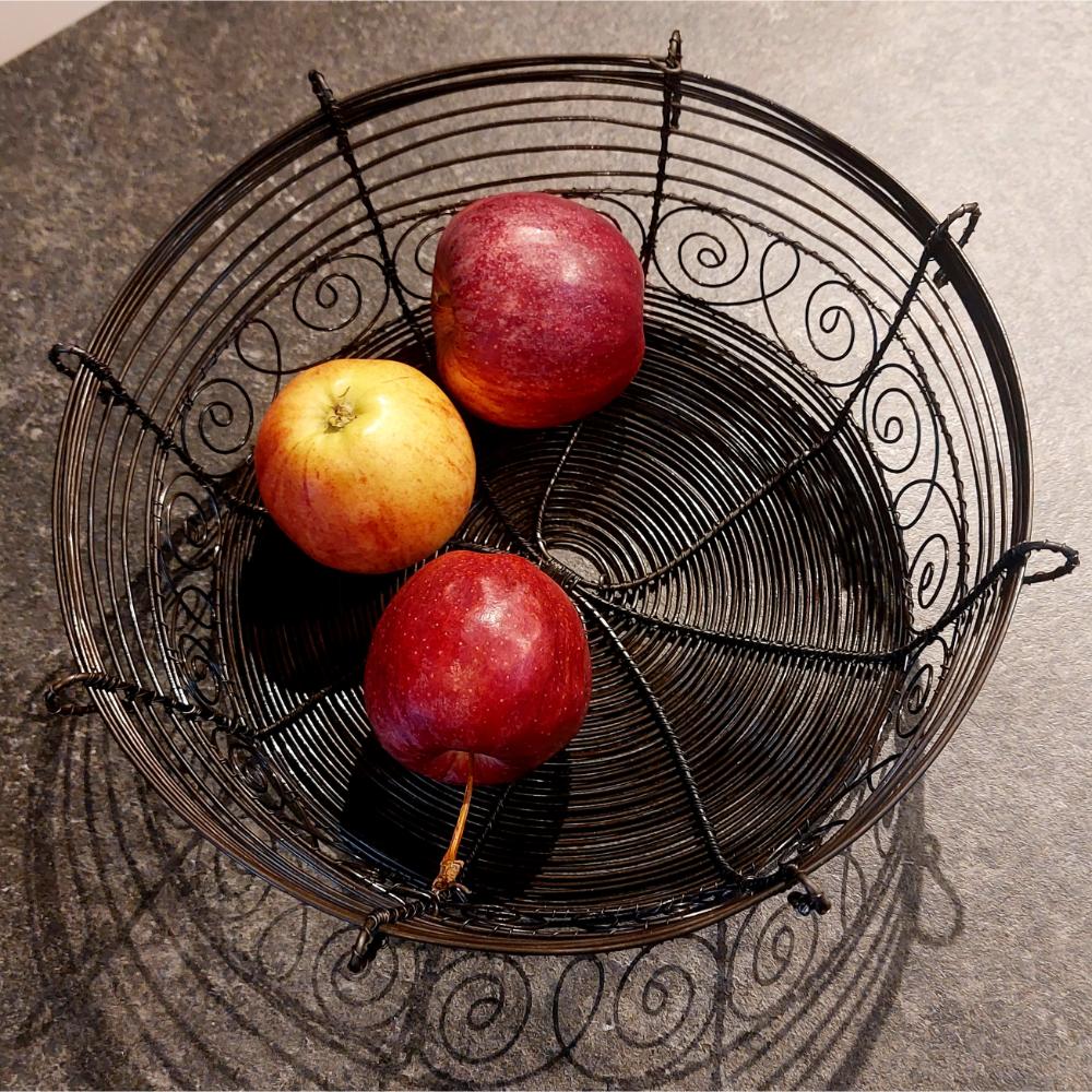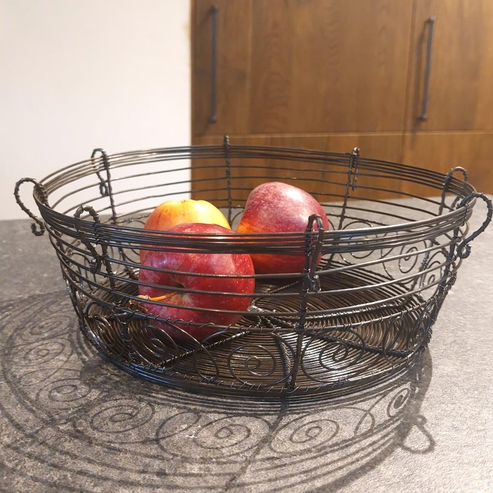 Drátovaná miska z černého drátu, vhodná na ořechy nebo ovoce na váš stůl.