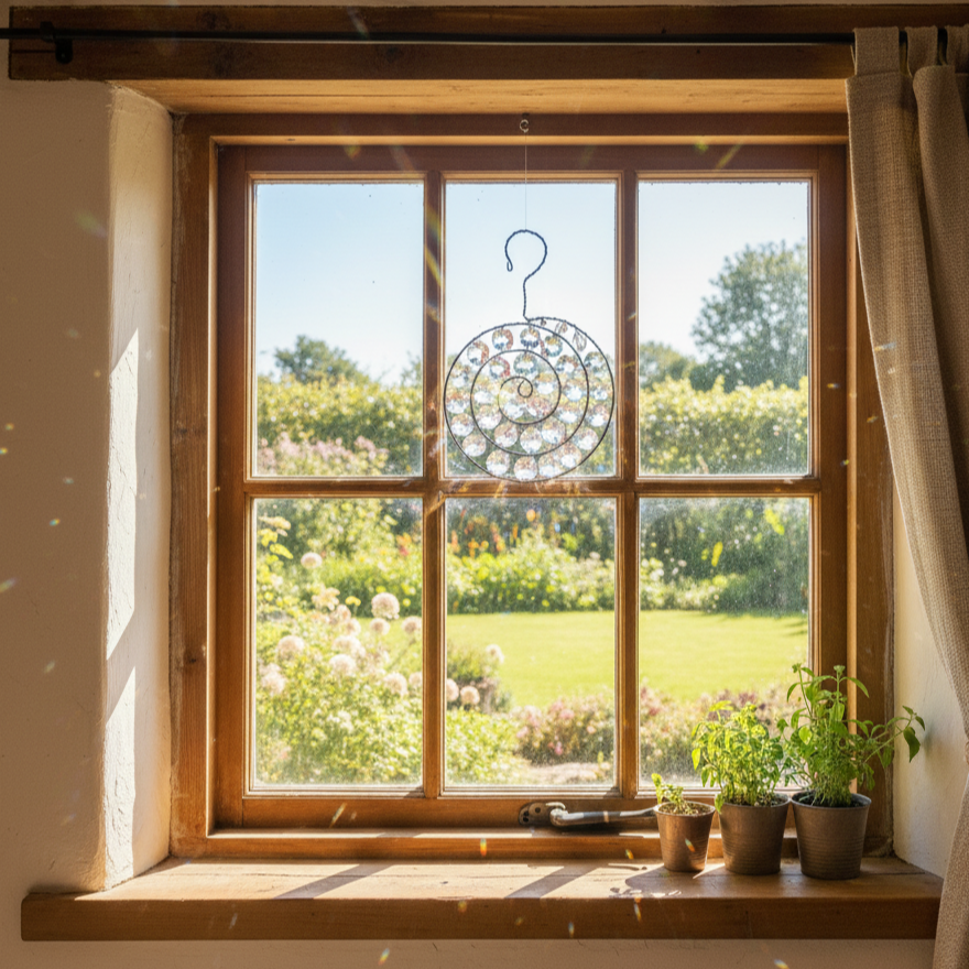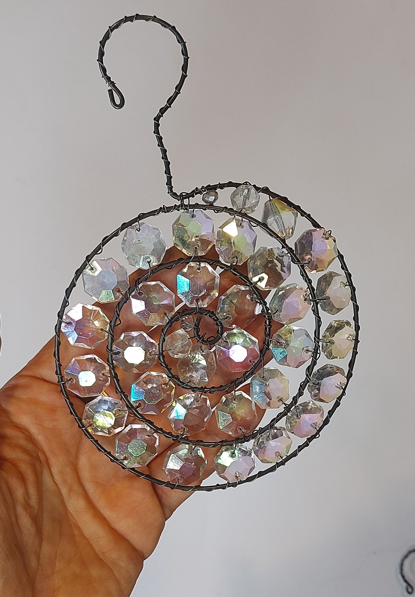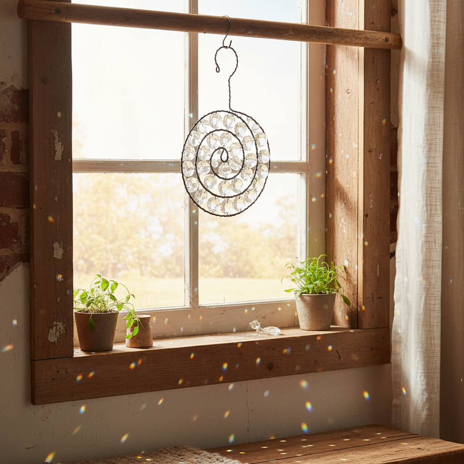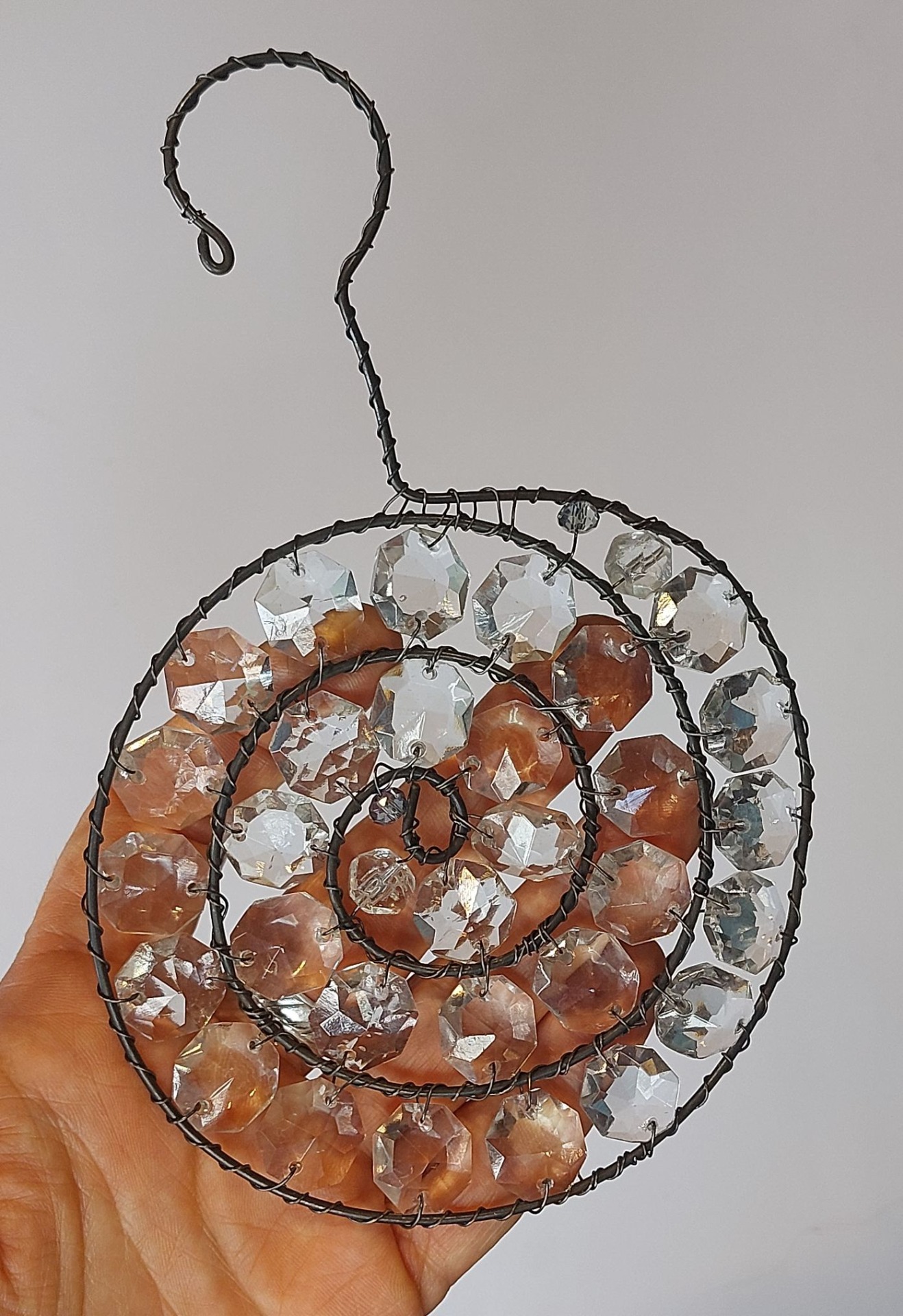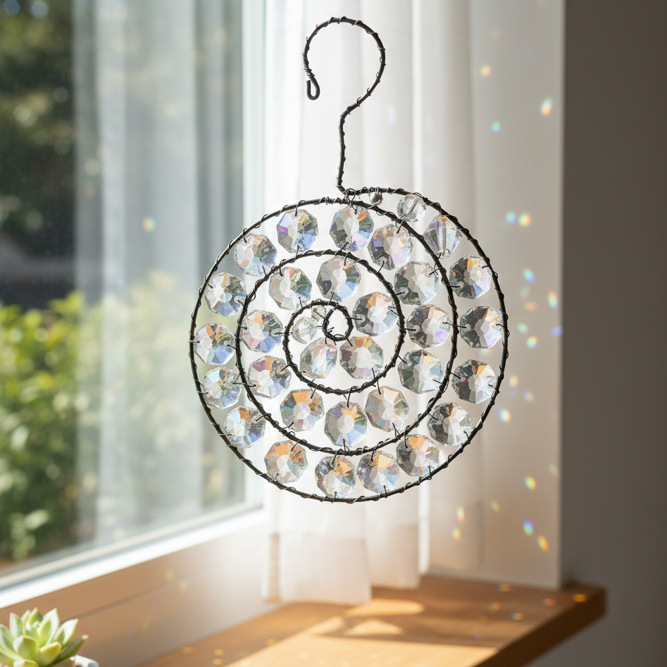Nepřehlédnutelná dekorace, která, zavěšená v okně, rozzáří celou místnost. Tato ručně drátovaná spirála s křišťálovými korálky oživí každý prostor hrou světla a odlesků.