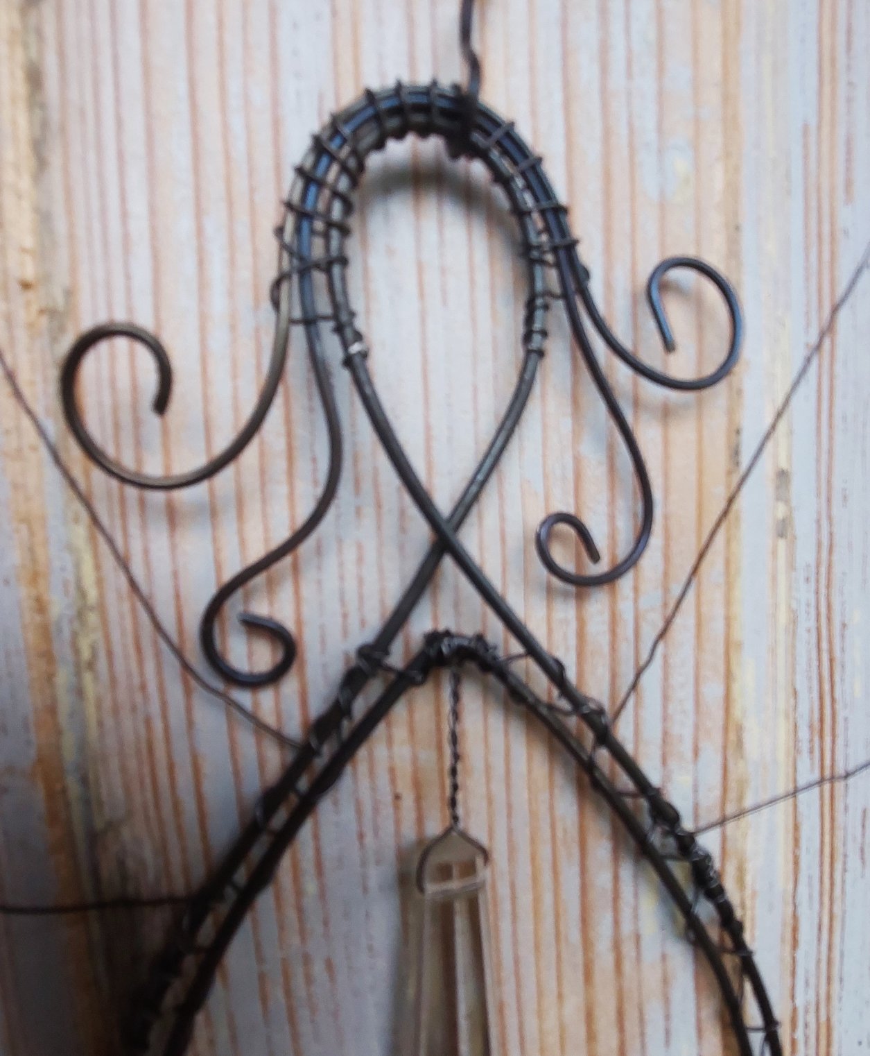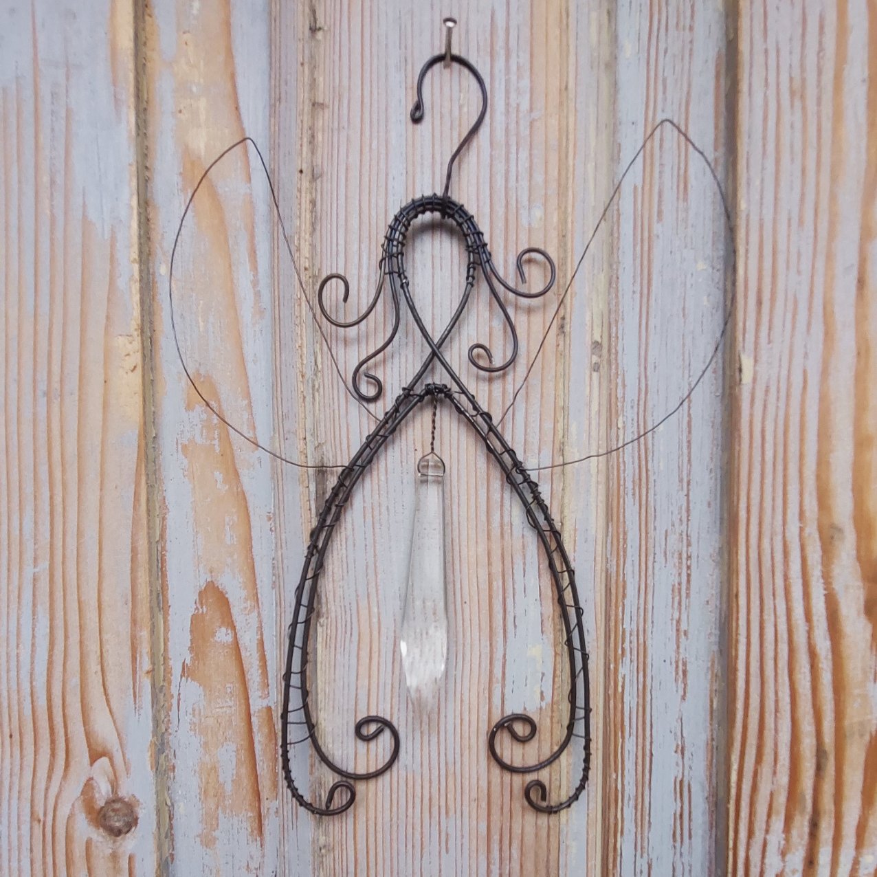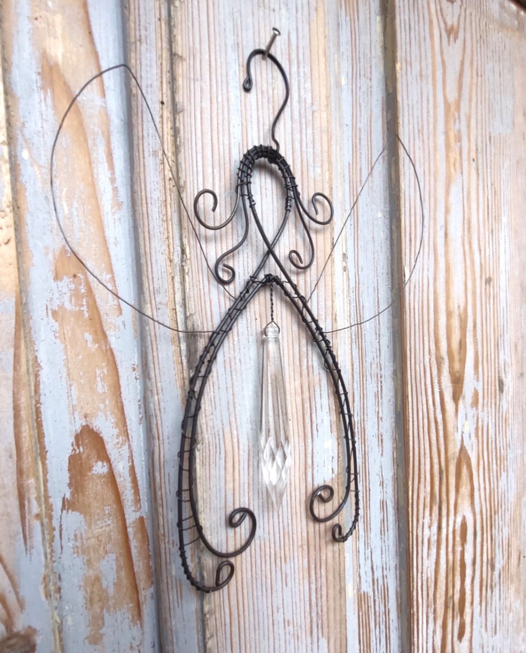 Anděl je ručně vyroben z černého železného drátu a doplněn o broušený skleněný ověs, který krásně odráží světlo. Díky svému minimalistickému vzhledu se hodí jak k tradičnímu, tak k modernímu interiéru.