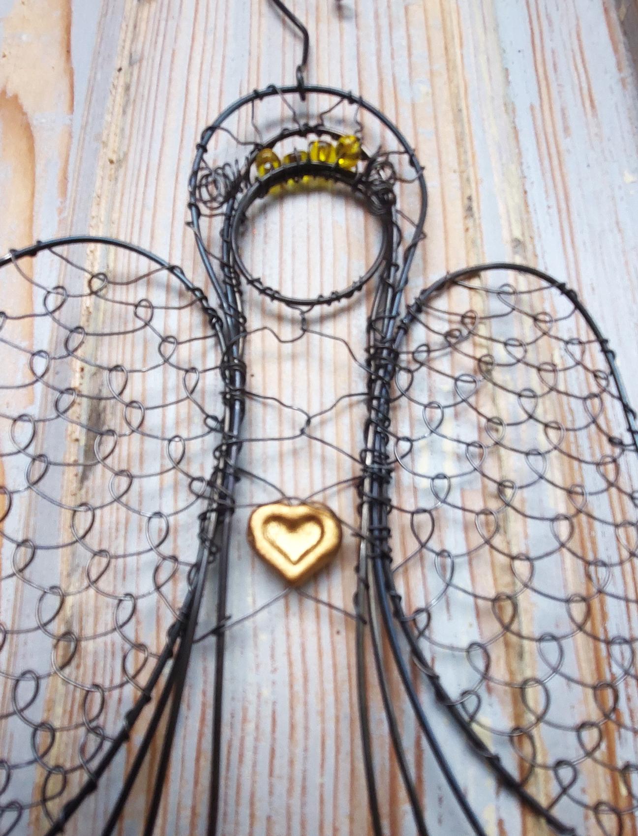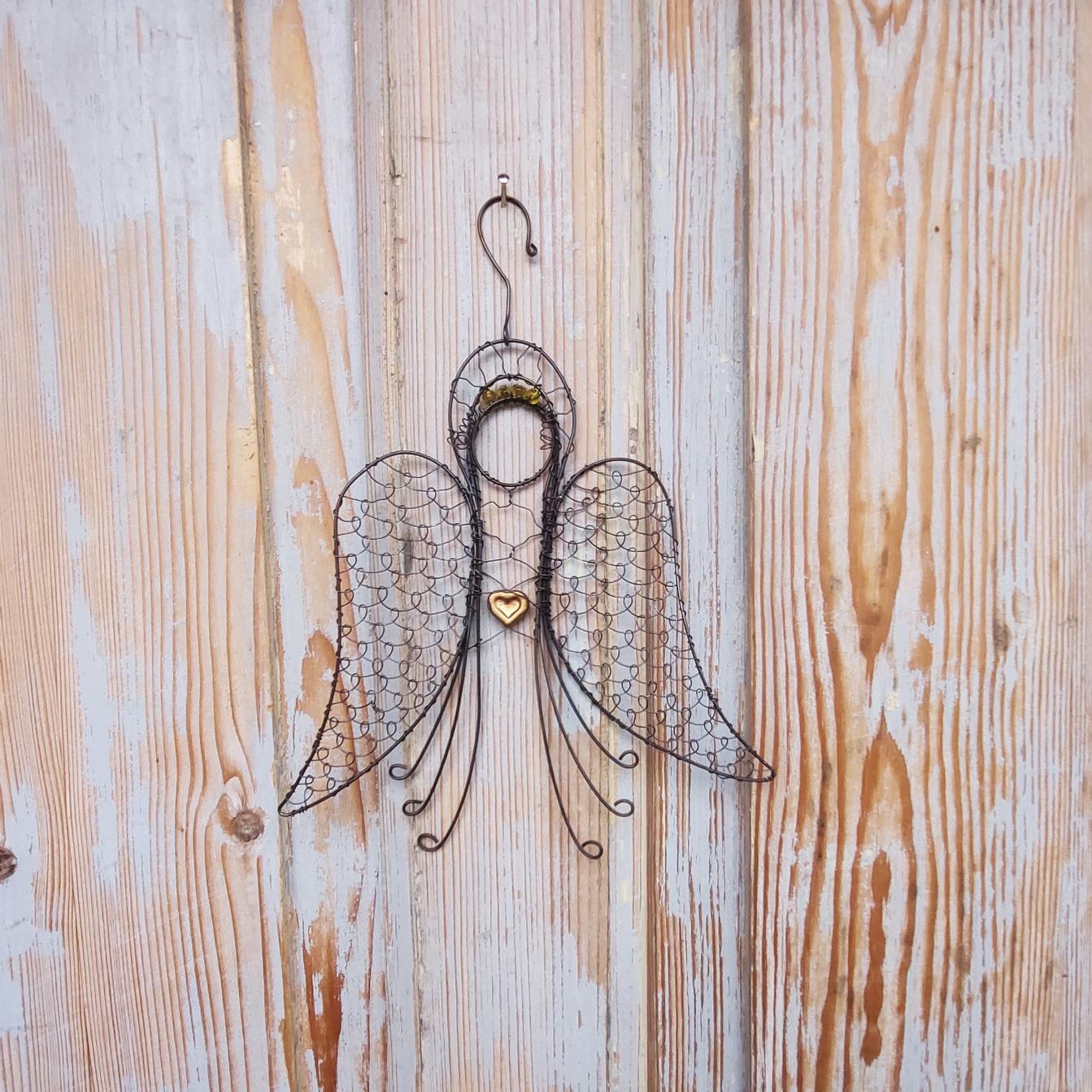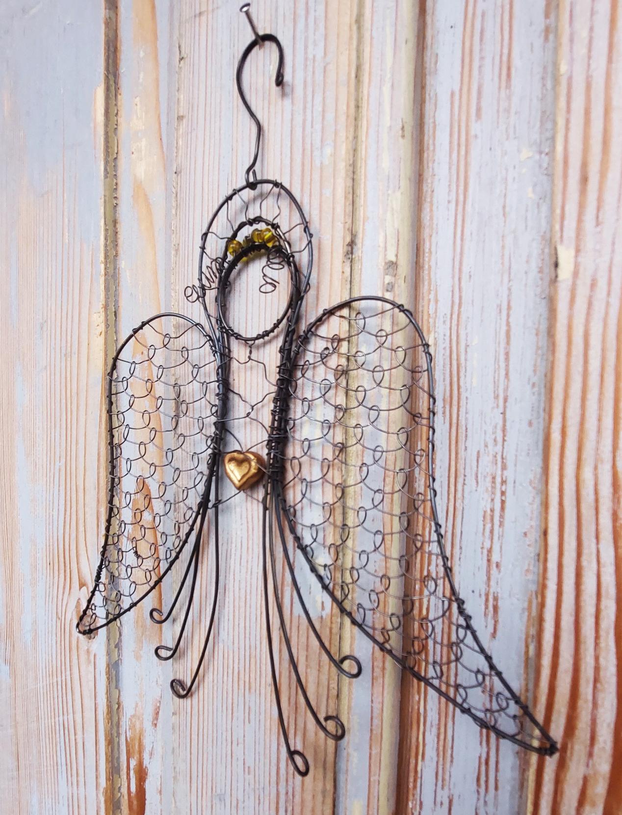 Drátovaný anděl s výškou 22 cm je symbolem ochrany, klidu a světla.