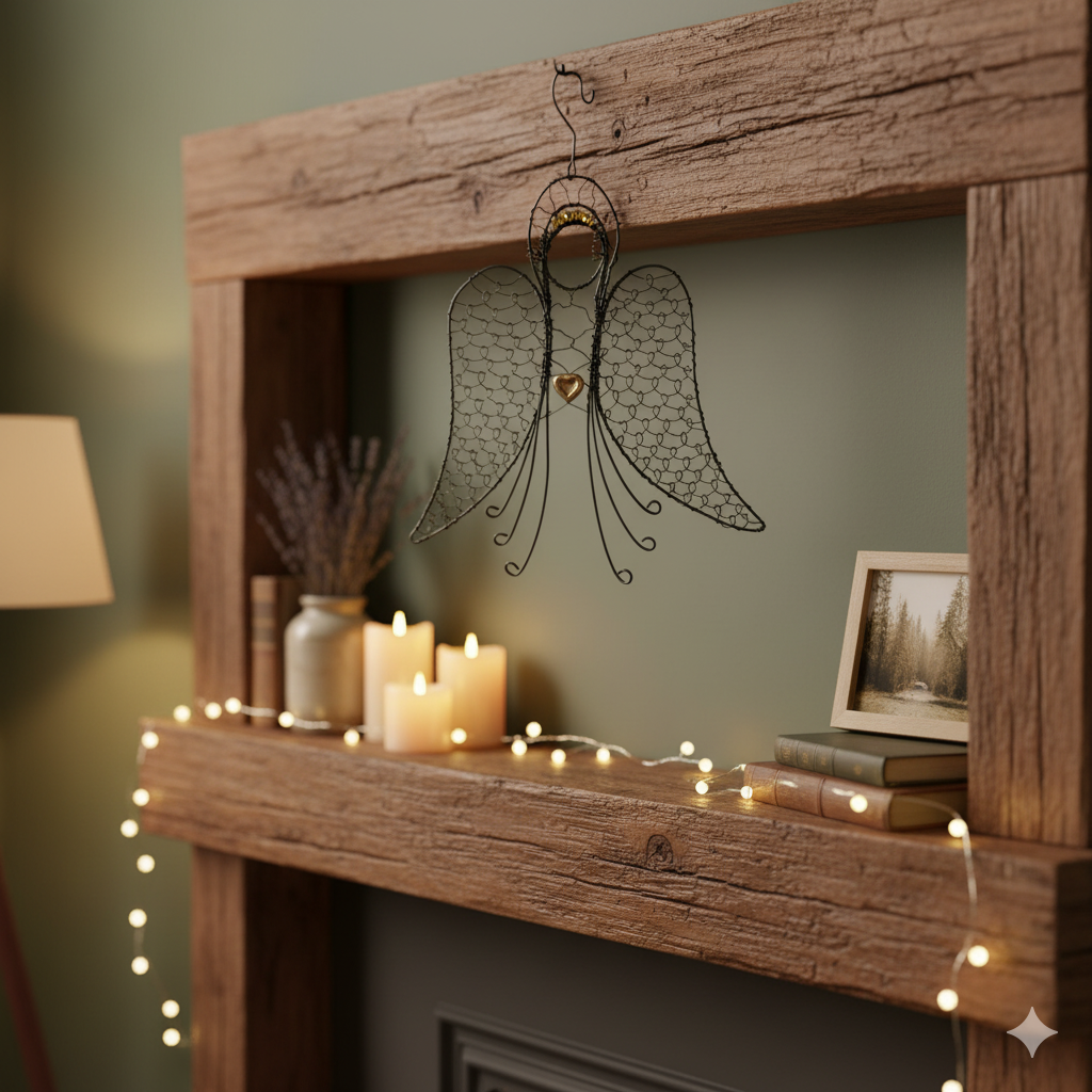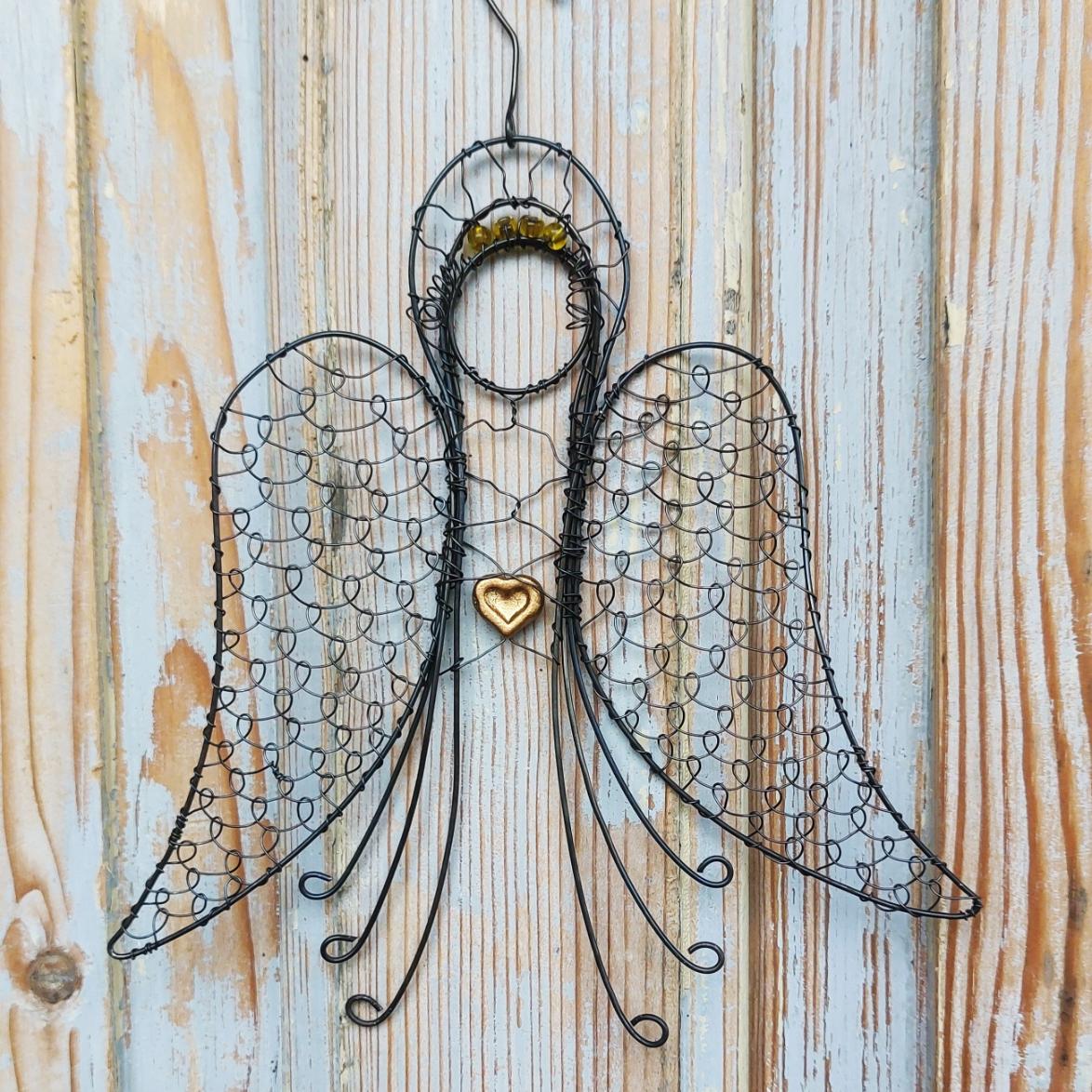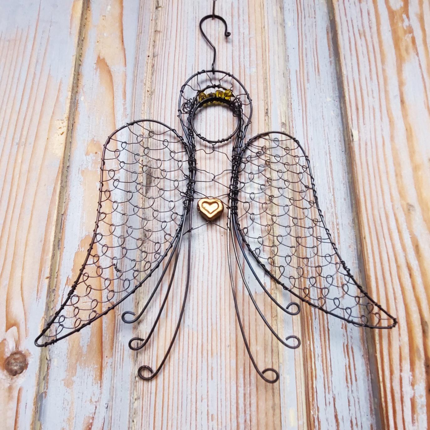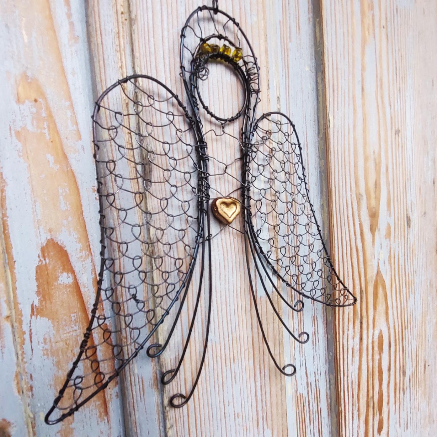 Drátovaný anděl s výškou 22 cm je symbolem ochrany, klidu a světla.