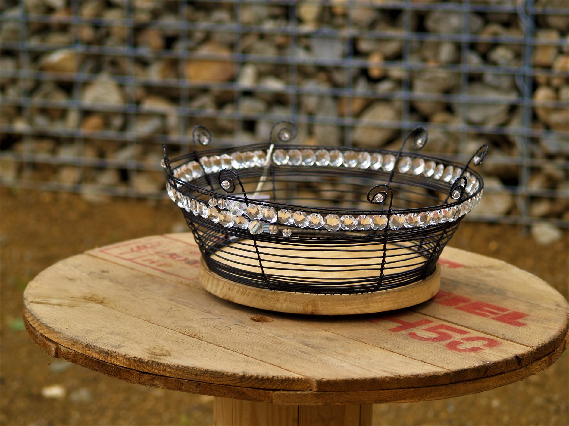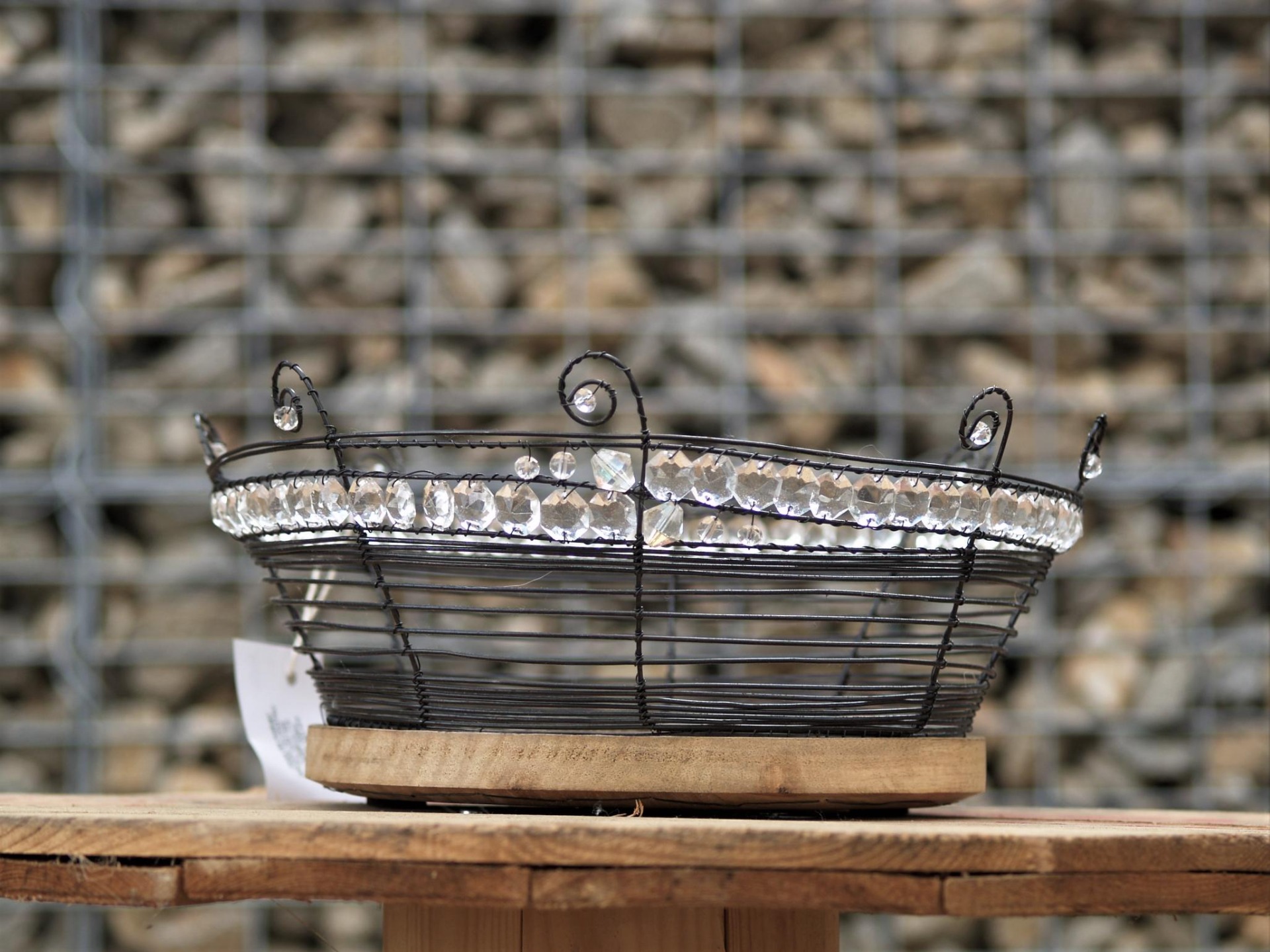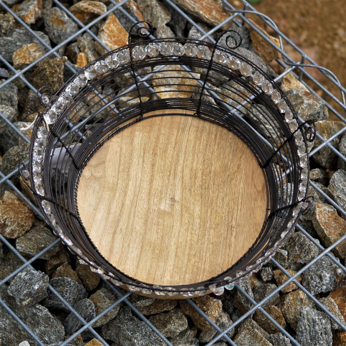 Mísa drátovaná z černého drátu s dřevěným dnem.