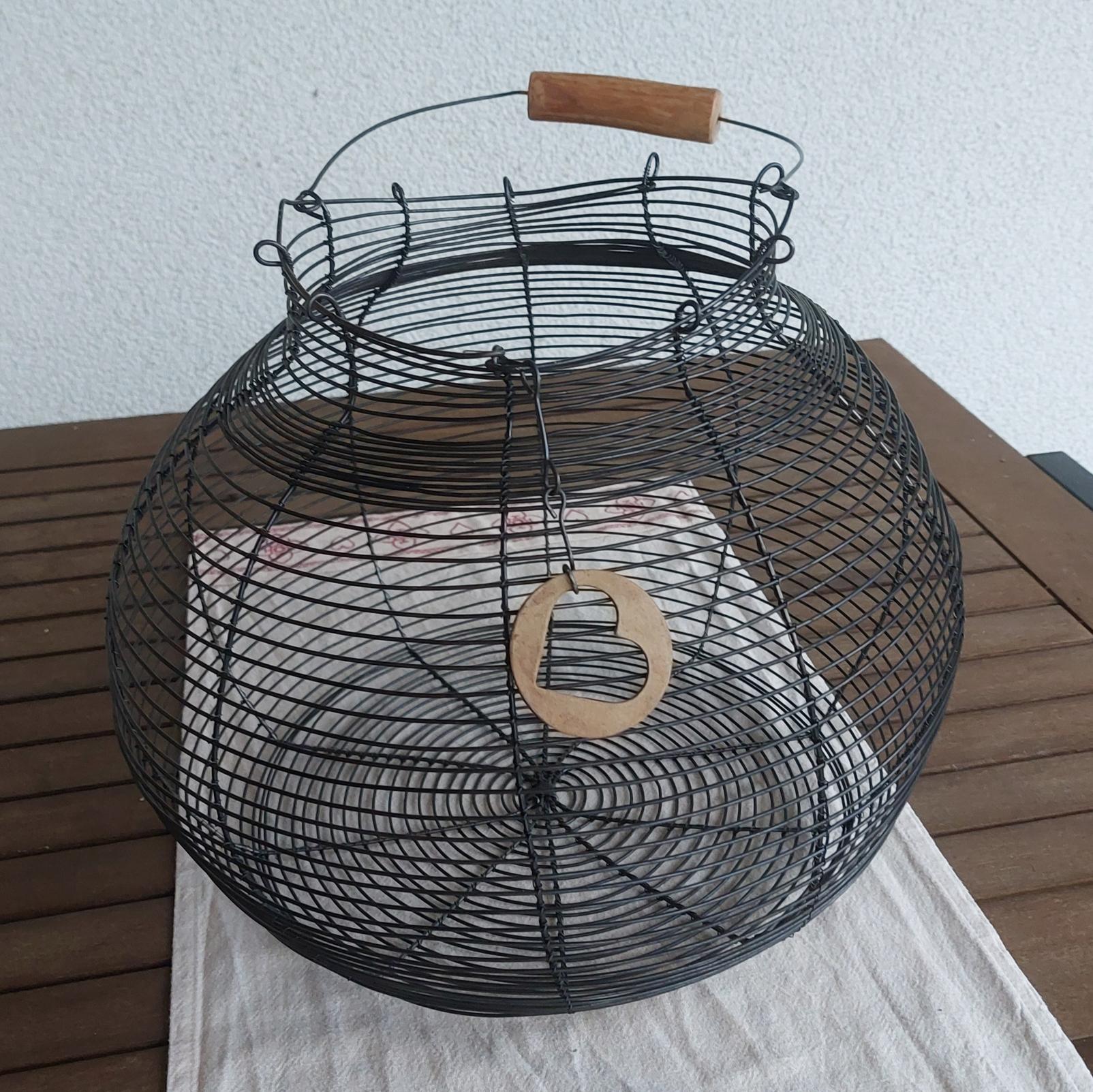 Vneste do vašeho interiéru dotek jednoduchosti a rustikálního stylu. Tento velký drátovaný koš je nejen krásným interiérovým doplňkem, ale také praktickou nádobou na lehčí věci. Díky svému buclatému tvaru, kovové konstrukci, dřevěnému madlu a keramickému srdíčku může působit vzdušně a romanticky.